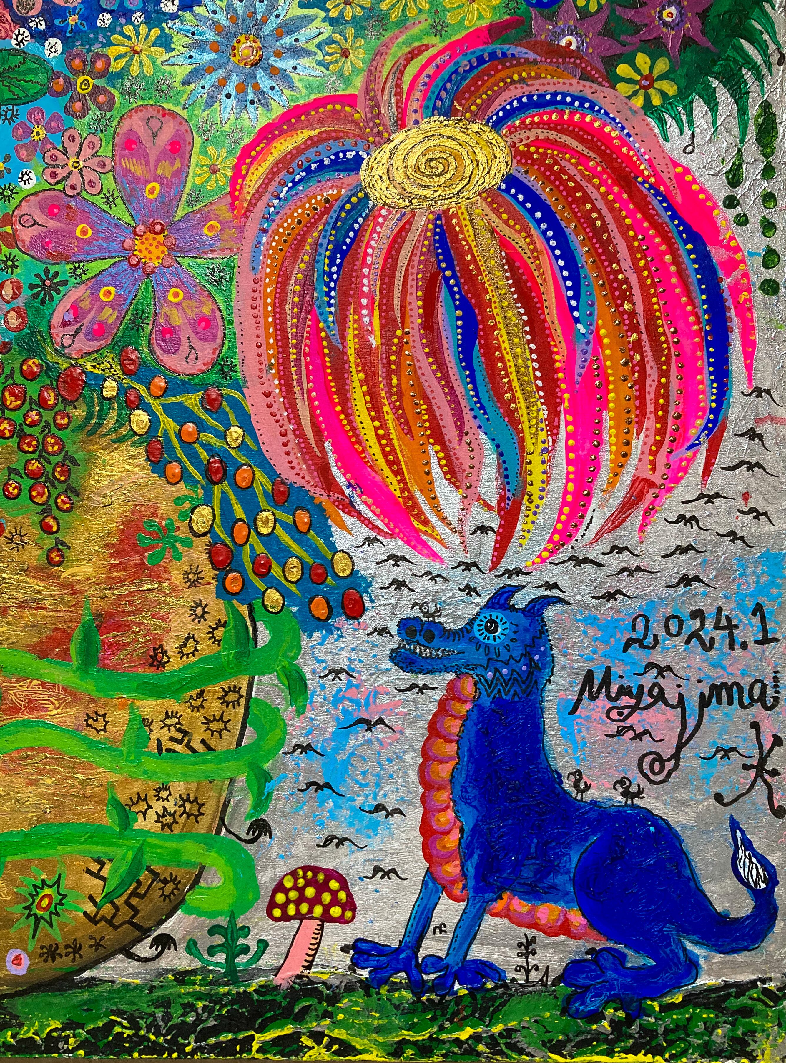 【使用画材】木製パネルにアクリル絵の具、ペン