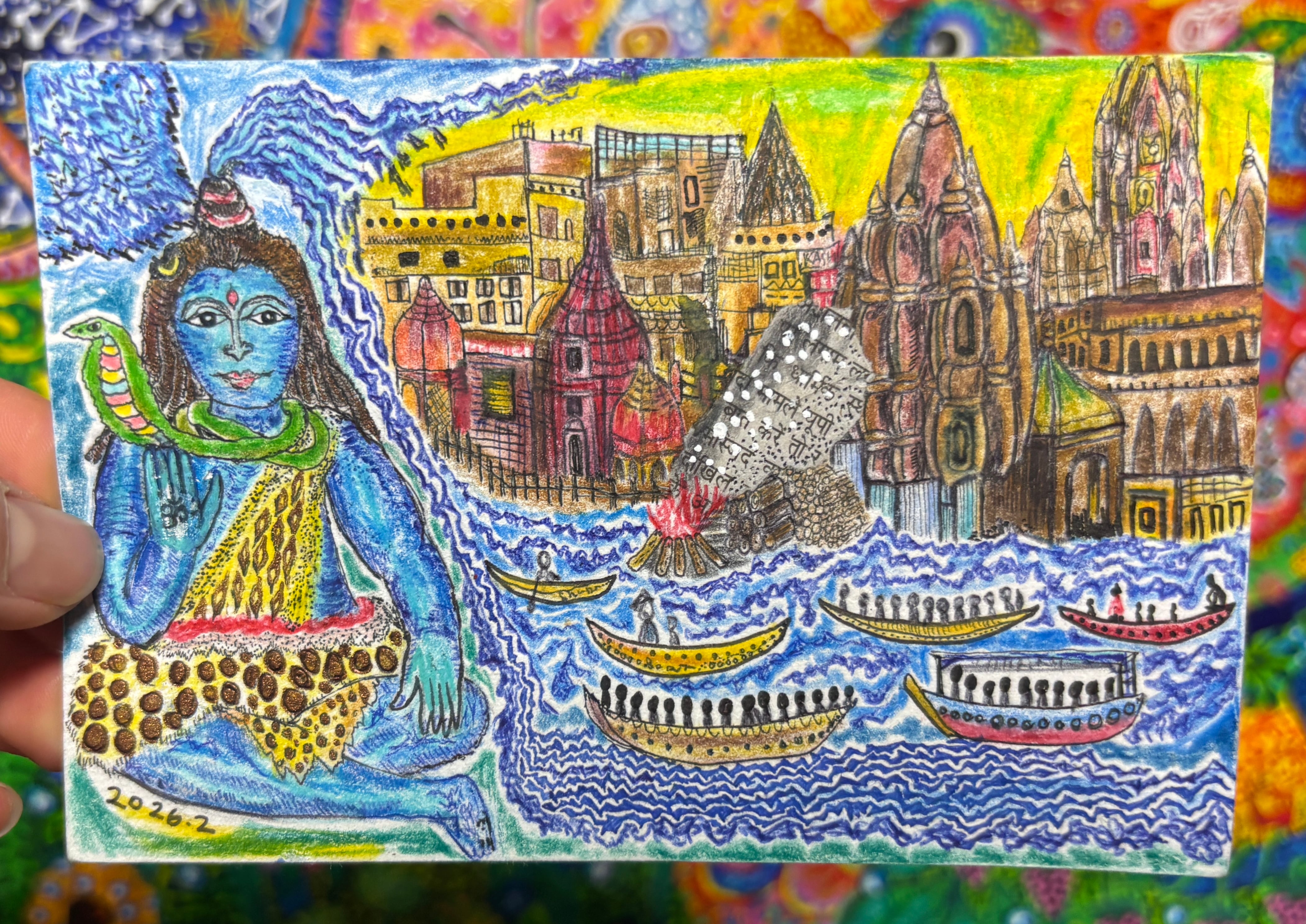 インド旅行画シリーズ【ガンジス川とシヴァ神】
