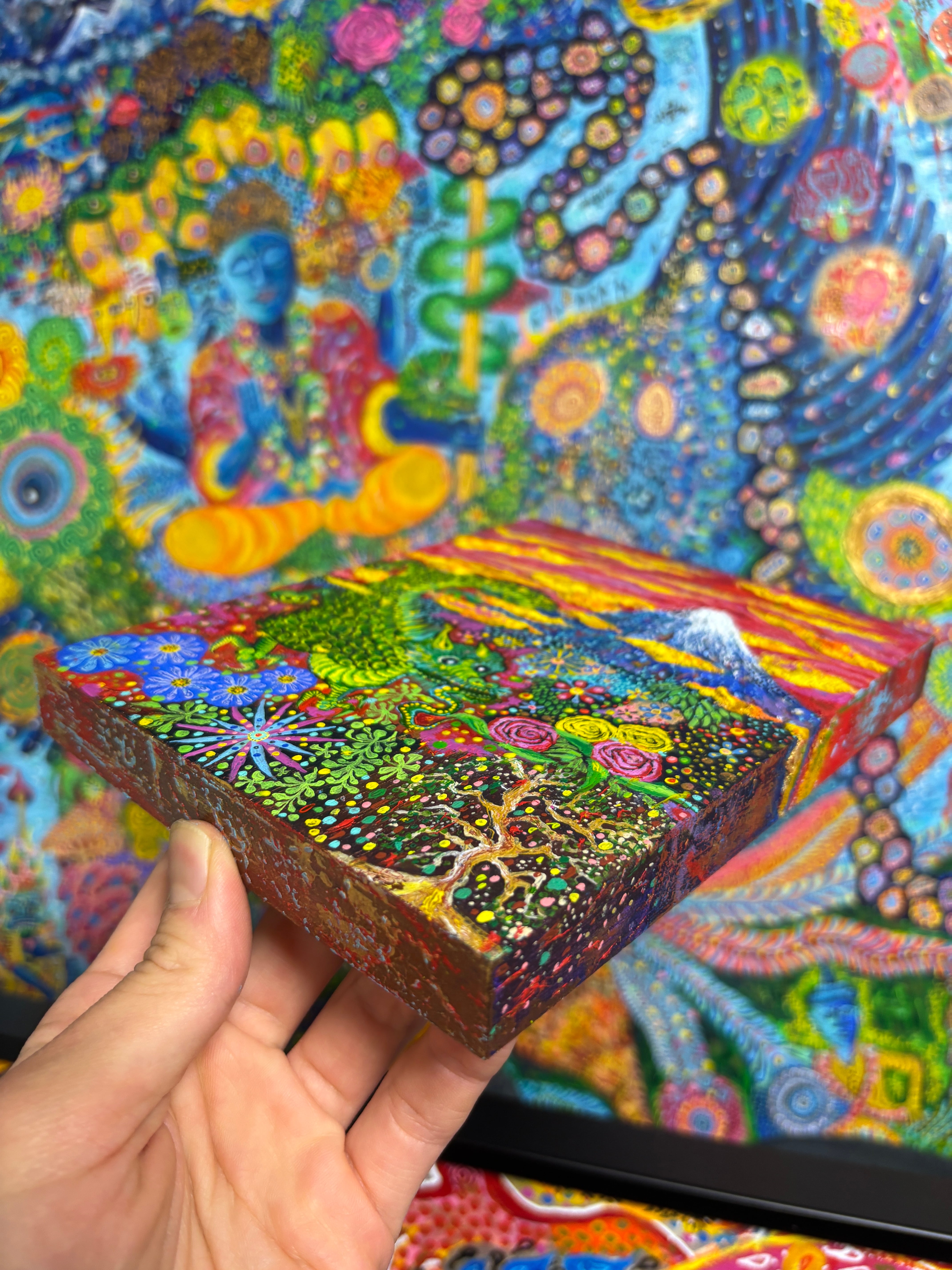 【使用画材】木製パネルにアクリル絵の具、ペン、メディウム